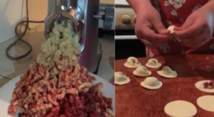 freezer to start making dumplings. She uses fresh ingredients to produce the dumplings and sells them in the local market.